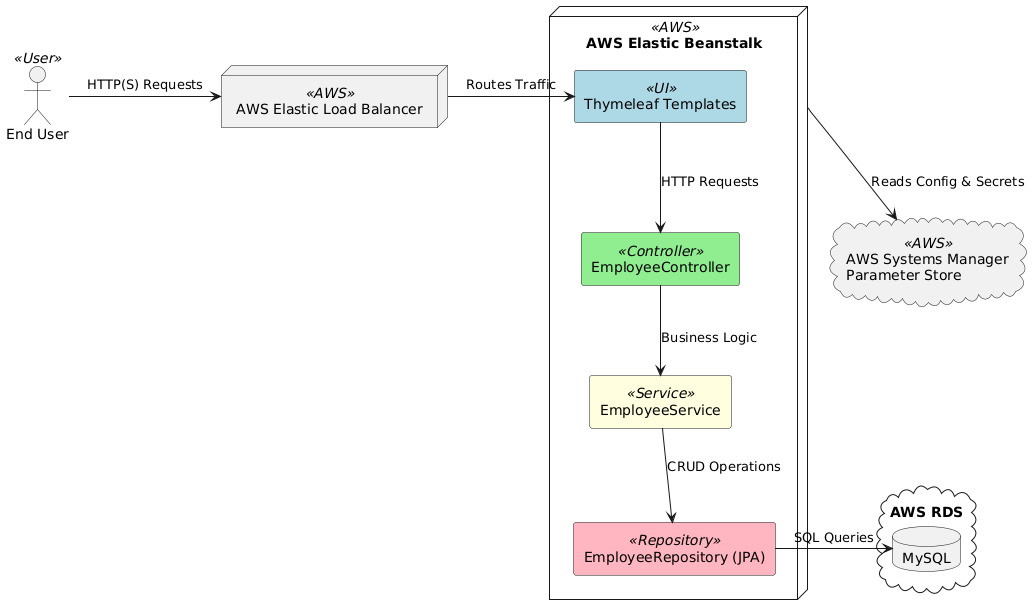 - Deployed to AWS Elastic Beanstalk with AWS RDS (MySQL) for persistence and AWS Systems Manager Parameter Store for secure configuration.